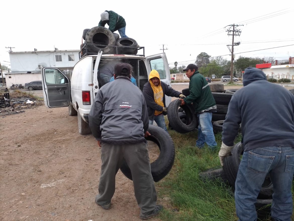 Como una forma de apoyar y coordinarse con las autoridades sanitarias, y con ello contribuir a la preservar la salud de las familias de Brisas del Campo y Riveras el Bravo, cuadrillas del Gobierno de Río Bravo, este miércoles se enfocaron en erradicar neumáticos de desecho, los cuales se encontraban en el camellón de avenida República Mexicana.