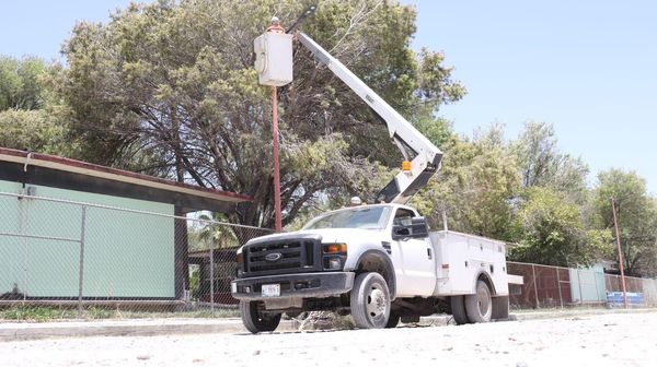 Los trabajadores del municipio desplegaron acciones de instalación de luminarias nuevas y arbotantes en la calle Monterrey entre las calles Coahuila y Guanajuato justo atrás del Centro de Atención Múltiple Río Bravo (Escuela de Educación Especial).