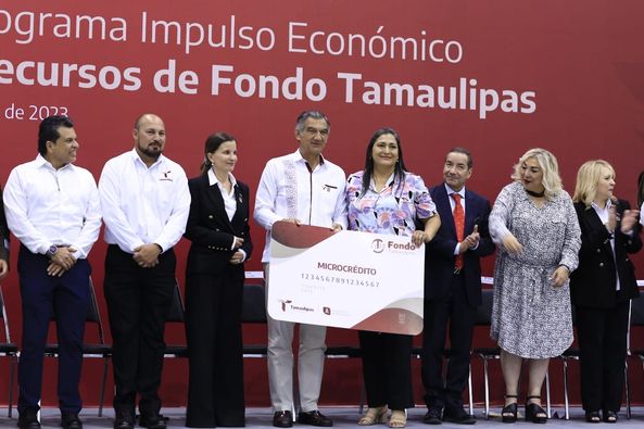 Tras un recorrido por los stands representativos de las y los beneficiarios del Fondo Tamaulipas y luego de la ceremonia cívica de honores, el mandatario estatal entregó cheques simbólicos a 10 acreditados de los programas de Microcrédito, Microemprendedor y Credibienestar, en representación de 400 beneficiarios de los municipios de Nuevo Laredo, Matamoros, Reynosa, Río Bravo, Miguel Alemán, Victoria, San Carlos, Gómez Farías, Llera, El Mante, San Fernando, Güémez, Tampico, Valle Hermoso, Abasolo, Padilla, Antiguo Morelos, Nuevo Morelos, Aldama, Altamira, Madero y Soto la Marina.