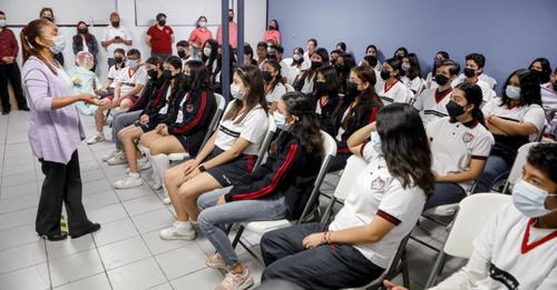 Ciudad Victoria, Tamaulipas.- Con la finalidad de hacer conciencia entre adolescentes y jóvenes en edad reproductiva, el Sistema DIF Tamaulipas que preside la doctora María de Villarreal impartió pláticas de prevención de adicciones y embarazo a temprana edad, acoso escolar y primeros auxilios.